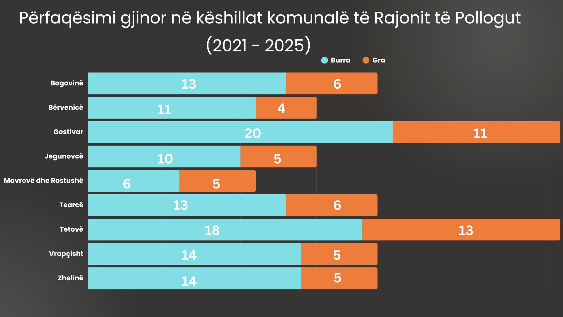 INFOGRAFIKË: PËRBËRJA GJINORE E KËSHILLAVE KOMUNALË NË POLLOG