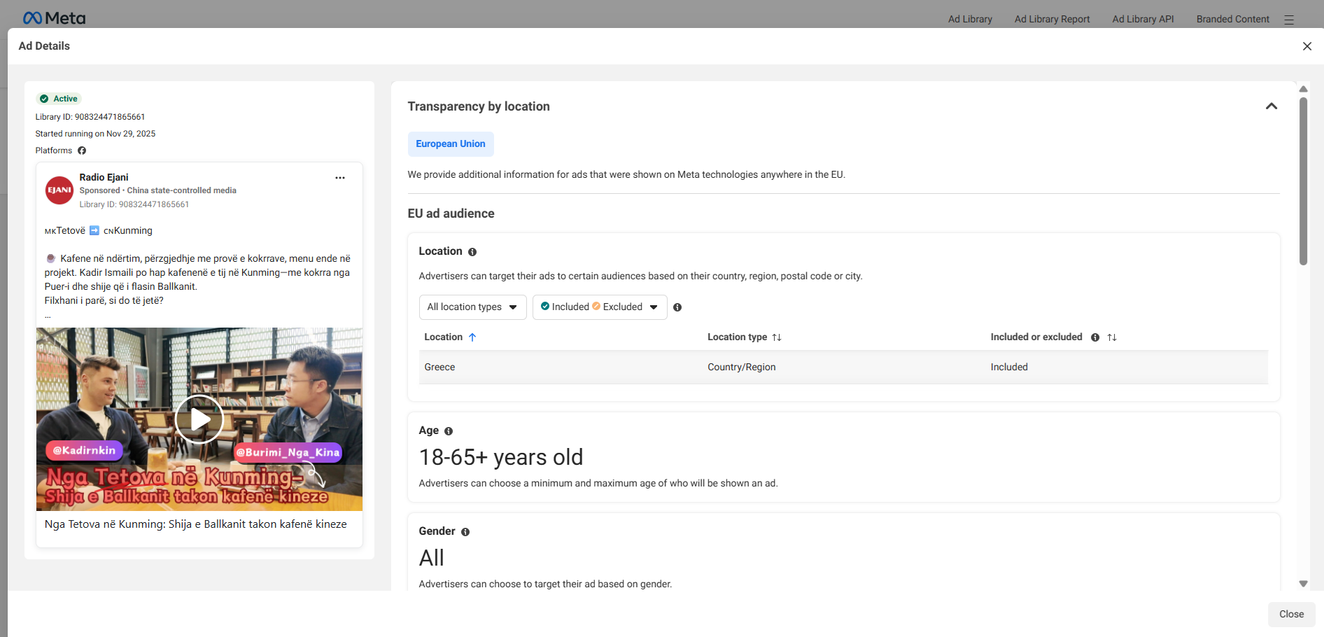 Значаен дел од оваа содржина се шири преку спонзорирани објави на Фејсбук, кои Meta ги регистрира во Meta Ad Library (библиотеката за реклами на Meta), каде јавноста може да ги види податоците за времето на објавување, трошоците и параметрите за демографско таргетирање.